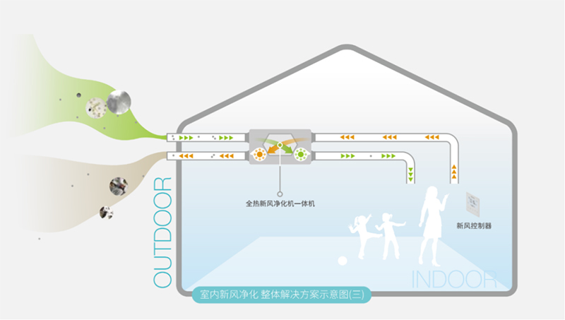 △全熱交換戶式新風(fēng)除霾系統(tǒng)示意圖 全屋凈、軟水系統(tǒng),通過前置過濾器、戶內(nèi)中央軟水機(jī)、末端凈水器,對(duì)生活供水分級(jí)處理、層層過濾,去除水中有害物質(zhì),讓用水更放心,生活更舒心。