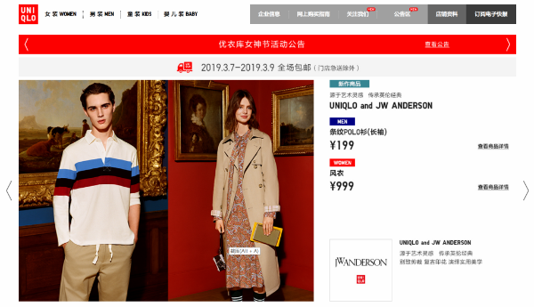 04 優(yōu)衣庫推出“門店急送”微信小程序功能 北京地區(qū)17家門店支持使用 近日,日本服飾品牌優(yōu)衣庫于微信小程序中推出了“門店急送”服務,該業(yè)務目前支持優(yōu)衣庫APP以及優(yōu)衣庫小程序購買時使用,目前僅支持北京地區(qū)17家有門店急送標志的店鋪使用。據(jù)了解,在“門店急送”功能中,消費者在手機端下單后,優(yōu)衣庫會依靠順豐同城服務將產(chǎn)品送貨上門。 根據(jù)優(yōu)衣庫母公司迅銷集團的2018年財報,集團在期內(nèi)綜合業(yè)績收益總額為21300億日元,同比增長14.4%;其中,海外優(yōu)衣庫事業(yè)分部全年累計收益同比增長26.6%,收益總額首次超越日本優(yōu)衣庫事業(yè)分部,全年度經(jīng)營溢利也增長至與日本本土同等的水平。(消息來源:北京商報)