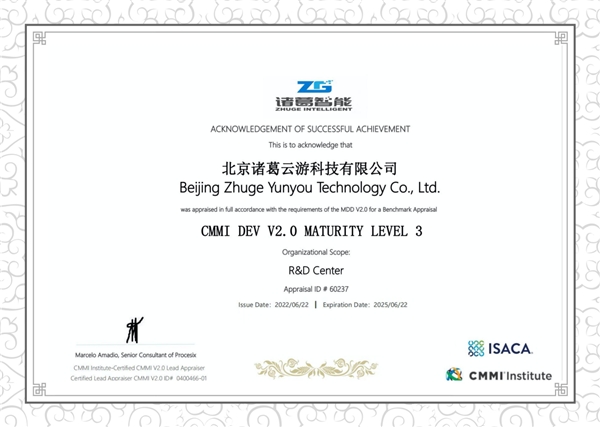 近日,諸葛智能順利通過CMMI 2.0版本的軟件能力成熟度三級認(rèn)證,標(biāo)志著諸葛智能在數(shù)據(jù)分析系統(tǒng)研發(fā)流程、開發(fā)能力成熟度和科技技術(shù)項(xiàng)目管理水平方面達(dá)到了行業(yè)較高水平,并且與國際先進(jìn)技術(shù)和管理模式接軌,達(dá)到了行業(yè)權(quán)威標(biāo)準(zhǔn),在實(shí)踐方面也滿足了相關(guān)要求。表明諸葛智能在系統(tǒng)研發(fā)和服務(wù)交付標(biāo)準(zhǔn)化、規(guī)范化、成熟度等方面始終保持著行業(yè)先進(jìn)水平。
