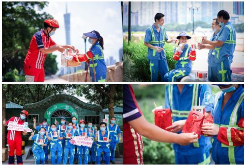 肯德基紅騎士全力以赴,為夏日下每位飛奔的你送驚喜 這個(gè)夏天,從一絲不茍保持城市整潔的環(huán)衛(wèi)工人,到疏導(dǎo)交通的工作人員,再到末班車上的加班青年……在城市的各個(gè)角落,依然有許許多多的一線工作者和默默為人生打拼的普通人堅(jiān)守在自己的崗位。那些不畏辛勞日夜奔波的人又何嘗不是生活中的“騎士”,他們的拼搏精神一樣值得贊賞。6月27日至7月31日肯德基紅騎士將化身“驚喜”派送官,隨機(jī)為堅(jiān)守在戶外的一線工作人員和為生活在路上奔波的人送上紅騎士驚喜桶和冷飲券,以及傳達(dá)真摯的感激與鼓勵(lì)。 7月廣州開始了一年中最炎熱的三伏天,“炎”值持續(xù)在線,“烤驗(yàn)”著每一位戶外工作者,廣東肯德基紅騎士適時(shí)出動(dòng)為環(huán)衛(wèi)工人、社區(qū)工作者送上紅騎士驚喜桶,為他們?cè)獨(dú)鉂M滿的一天加油充電,更貼心準(zhǔn)備了冰袖給環(huán)衛(wèi)師傅降溫防曬,為他們送去清涼。