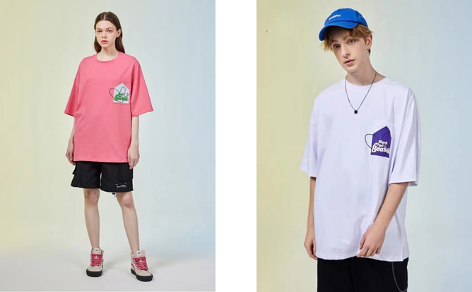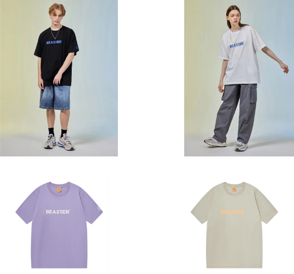BEASTER 潮流系列T恤,粉綠撞色盡顯夏日浪漫(左) 簡約白色滿足百搭需求(右) 顏色呼應 牽手一致步調(diào) 怦然心動,愛是無法隱藏。情侶裝一直是彰顯愛意的絕佳方式。BEASTER
