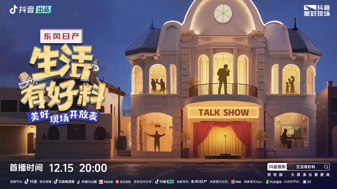 12月15日晚上8點,在抖音演出、東方衛(wèi)視、抖音美好現(xiàn)場同步首播,《生活有好料美好現(xiàn)場開放麥》將帶你飛越日常的平淡,探索快樂的邊界,迎接不一樣的星期一!