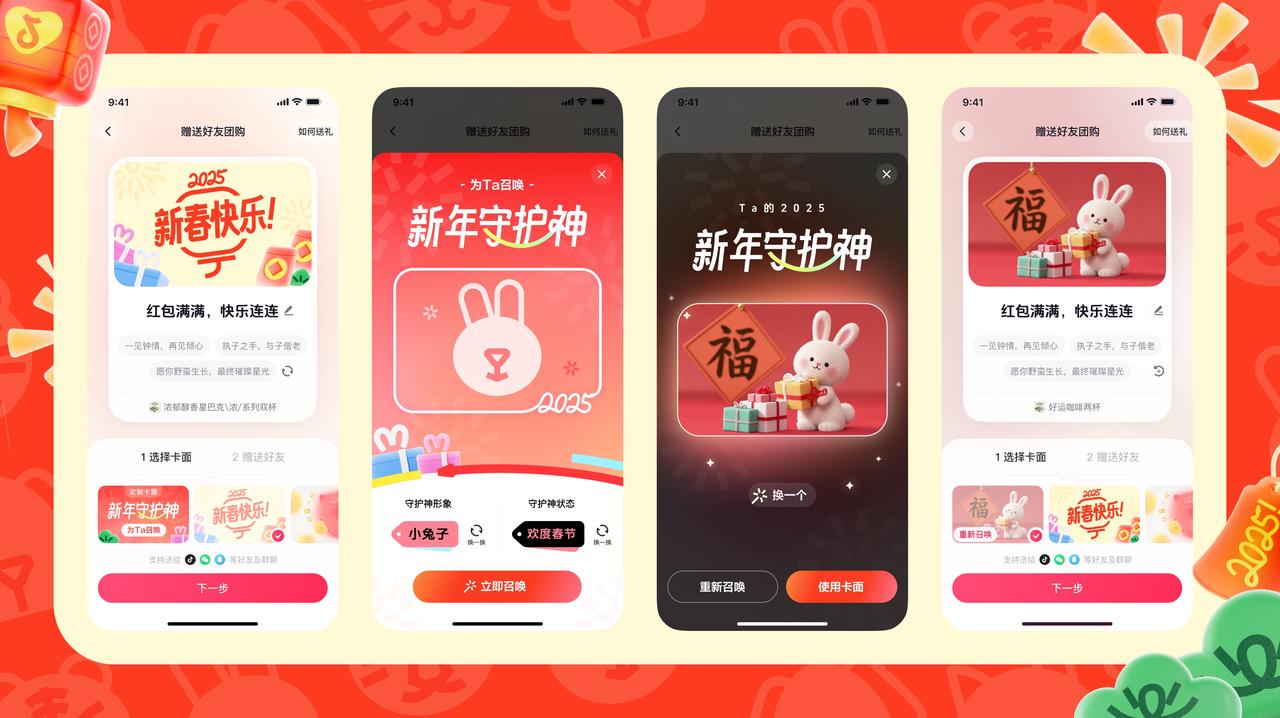 今年 1 月 24 日至 2 月 12 日期間,抖音生活服務(wù)特別打造了“召喚守護(hù)神”、趣味禮物特效等一系列特色產(chǎn)品活動。用戶在送禮頁面時,能夠通過選擇 “守護(hù)神形象” 與 “守護(hù)神狀態(tài)”,召喚出可愛十足的 “守護(hù)神” 作為獨(dú)特的送禮封面,為對方定制專屬的新春卡面。當(dāng)然除了“守護(hù)神“,用戶也可以從多種封面如“好柿發(fā)生”“吃好喝好”中自行挑選,也能盡情發(fā)揮創(chuàng)意,自己編輯祝福語,打造屬于彼此的好禮獨(dú)家記憶。