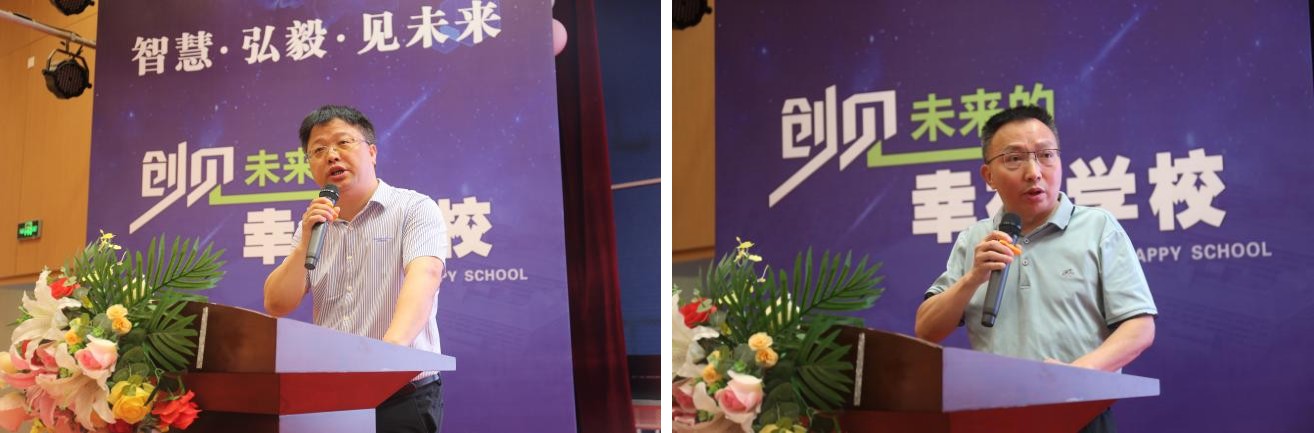 學(xué)校代表主旨報(bào)告由武漢經(jīng)開(kāi)區(qū)官士墩中學(xué)胡鳳蘭副校長(zhǎng)和漢陽(yáng)區(qū)快活嶺小學(xué)柳娜副校長(zhǎng)分享。胡校長(zhǎng)以《臉上有笑,眼里有光——幸福教育理念下活力學(xué)子的生長(zhǎng)》為題,從課程是主旋律、開(kāi)放是關(guān)鍵詞、分?jǐn)?shù)是強(qiáng)心針等三個(gè)維度彰顯了學(xué)校注重校本課程的深度開(kāi)發(fā)、辦學(xué)特色的里外融通和育人質(zhì)量的內(nèi)涵提升等特色品牌的發(fā)展動(dòng)能;柳校長(zhǎng)以《五育并舉求發(fā)展,快樂(lè)助跑素質(zhì)行》為題,闡述了育人理念“讓每一位學(xué)生體驗(yàn)學(xué)習(xí)的快樂(lè)”落地的校本作為——“五育”節(jié)日化,即德育文化節(jié)、智育閱讀節(jié)、超燃體育節(jié)、美育藝術(shù)節(jié)和快樂(lè)勞動(dòng)節(jié),塑造了學(xué)??鞓?lè)教育的靚麗品牌。