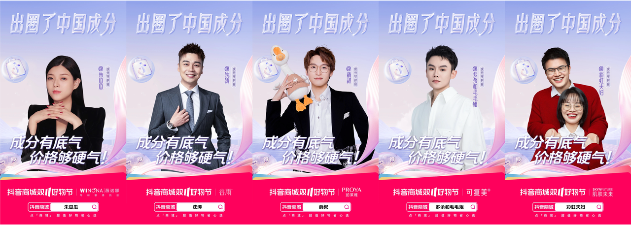 本次「出圈了中國成分」主題傳播活動中,抖音電商平臺深挖珀萊雅、薇諾娜、韓束等眾多護膚品牌成分,聚焦于成分這一核心優(yōu)勢,幫助在美白、抗老、修護三大細分賽道持續(xù)領(lǐng)跑的國貨品牌們充分展示王牌成分。