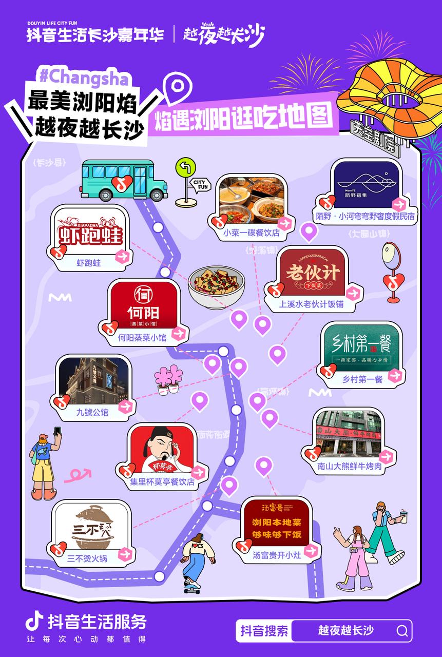 除此之外,活動還驚喜上線「焰遇瀏陽逛吃地圖」,為前來觀賞煙花秀的游客們附贈詳細(xì)逛吃攻略,“安利”必打卡的地道小店,引發(fā)網(wǎng)友好評。