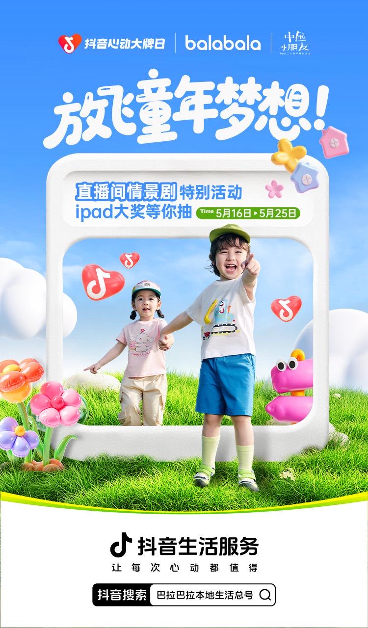 5月16日至5月25日,兒童時尚品牌巴拉巴拉攜手抖音生活服務(wù)「抖音心動大牌日」推出“放飛童年夢想”主題活動,以“坐著紙飛機去旅行”為創(chuàng)意主線,打造沉浸式“童年紙飛機停車坪”直播間?;顒悠陂g,品牌主推“375元抵500元”大牌日專屬代金券(抖音直播間專屬),還有“286元抵300元”折上折疊加卡券及紅山動物園聯(lián)名親子T恤組合券,更有ipad等大獎福袋不停歇發(fā)放,多重優(yōu)惠助力大家輕松解鎖夏季童裝煥新體驗。另外,直播間還將以“紙飛機”為核心元素,通過動態(tài)光影裝置與童趣舞臺設(shè)計,呈現(xiàn)奇幻旅行場景;5月16日至5月18日,每天演繹三幕不同主題的沉浸式情景劇,深度展現(xiàn)巴拉巴拉童裝的多場景穿搭魅力,觀眾不僅能分享親子間的快樂旅行故事,還可跟隨虛擬動畫視頻穿梭城市實景地標,直觀感受服飾細節(jié)與實穿性。