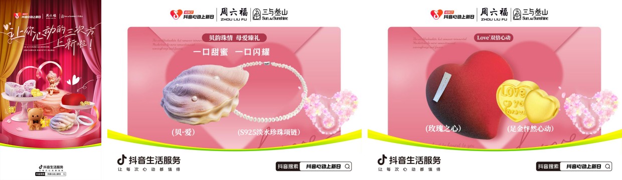 周六福與三與叁山以“吃在嘴里甜在心里 —— 周六福 & 三與叁山的 520 浪漫之約”為主題,攜手「抖音心動上新日」開啟雙品牌首次抖音跨界合作,通過“黃金珠寶+網(wǎng)紅蛋糕”的創(chuàng)意組品CP,于520節(jié)點精準滿足年輕消費群體的情感需求?;顒悠陂g,雙方聯(lián)合推出多種限定款組合套餐:包含周六福S925淡水珍珠項鏈搭配三與叁山貝·愛慕斯蛋糕組合成【貝韻珠情,母愛臻禮】套餐-獻禮母親節(jié)-致敬最美的她!周六福足金怦然心動項鏈聯(lián)名三與叁山玫瑰之約愛心慕斯蛋糕,打造520超級心動“甜寵CP”禮盒,致力于為大家打造“味覺與視覺雙重浪漫體驗”。在新品發(fā)布的超級直播大場中,雙品牌將特邀明星助陣直播間放送福利,帶領(lǐng)大家共赴“甜在嘴里、愛在心里”的浪漫之約;同時,站內(nèi)達人也將借助多元形式進行全域種草,將聯(lián)名CP品與520告白、紀念日儀式等情感場景深度綁定,激活用戶“既要儀式感又要性價比”的消費決策。雙品牌還將在線下門店同步設(shè)置主題打卡區(qū),鼓勵用戶在抖音分享愛情故事參與互動,拉滿互動體驗值。此次聯(lián)動不僅是黃金珠寶與烘焙賽道的破圈嘗試,更通過抖音超級節(jié)點營銷驗證“情感場景×品類跨界×明星勢能”的品效協(xié)同模式,為雙品牌帶來門店客流增長的亮眼戰(zhàn)績,成功打造“1+1>2”的行業(yè)案例。