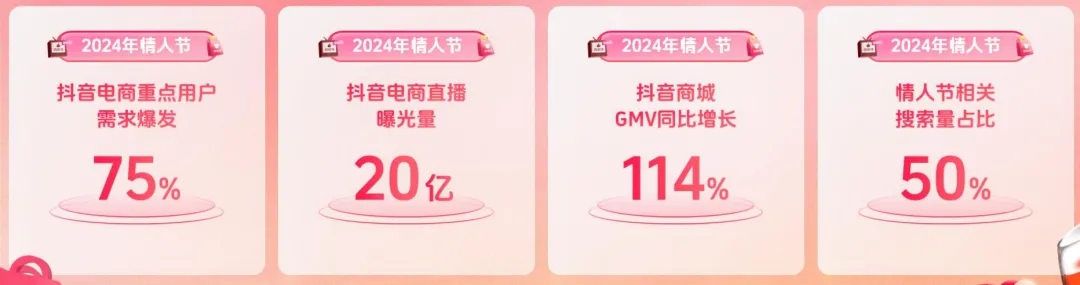 如2024年情人節(jié),抖音電商重點(diǎn)用戶需求爆發(fā)了75%,直播曝光量達(dá)20億,商城GMV同比增長114%,情人節(jié)相關(guān)搜索量占比達(dá)50%。今年用戶依然高度活躍,消費(fèi)心智更為成熟。這充分證明了抖音電商擁有巨大的生意空間和增長潛力。