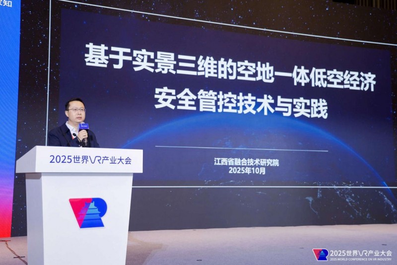 江西省融合技術(shù)研究院院長帥博介紹了《基于實景三維的空地一體低空經(jīng)濟安全管控技術(shù)與實踐》,展示了該院在低空安防、無人機管控與應(yīng)急指揮等方面的系統(tǒng)化解決方案,強調(diào)VR技術(shù)在實現(xiàn)“空地一體”立體防控中的價值。