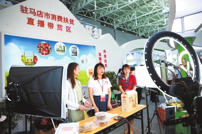 第二十三屆中國(guó)農(nóng)加工投洽會(huì)上,主播們正在會(huì)場(chǎng)直播銷售扶貧農(nóng)產(chǎn)品。弓華靜攝