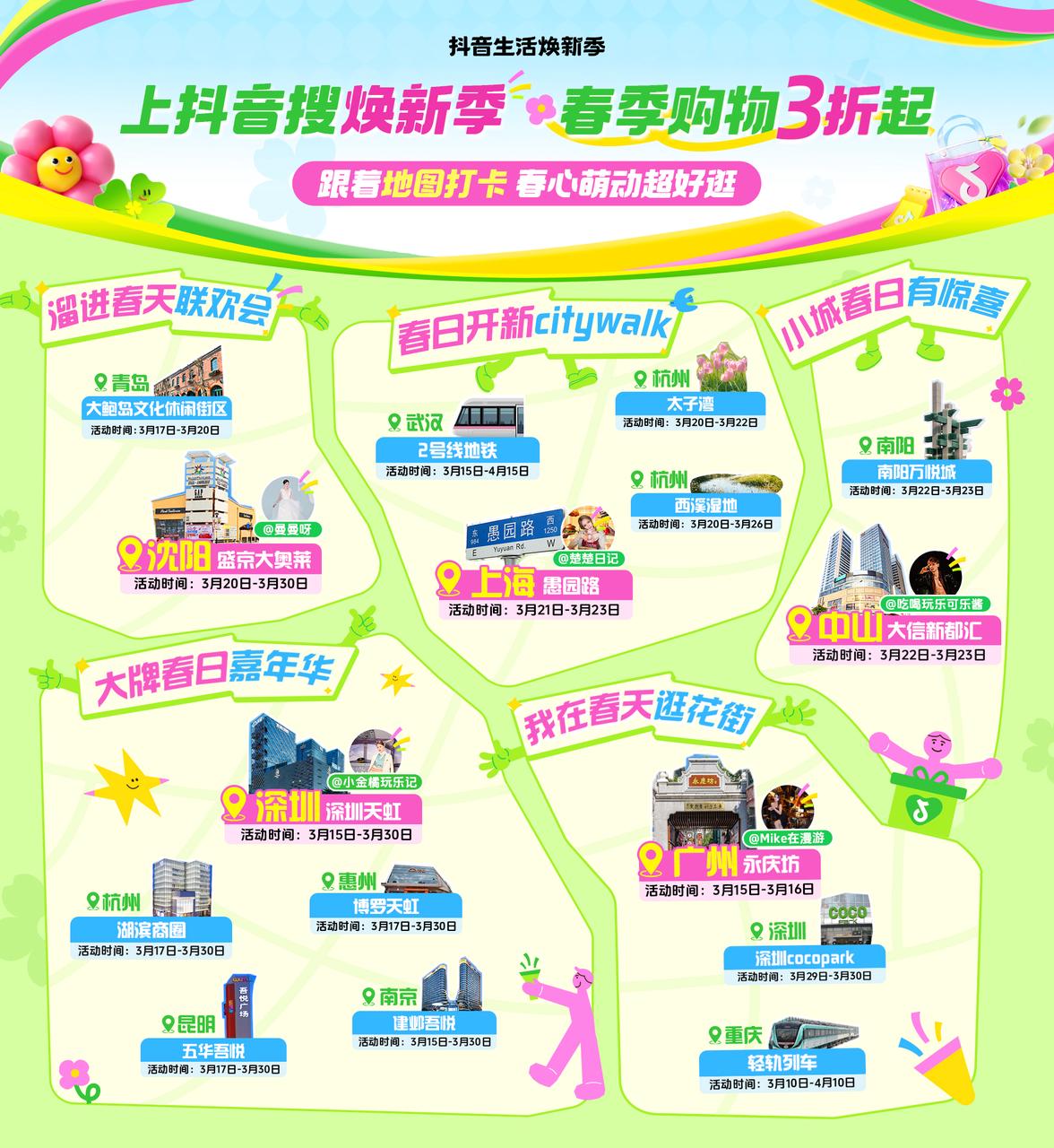 在線上分享的同時(shí),大家還可以去線下解鎖春日出游新地圖。目前,線下商場(chǎng)和服飾品類(lèi)品牌店鋪打卡活動(dòng)持續(xù)進(jìn)行中,跟著地圖溜進(jìn)春天聯(lián)歡會(huì)、和搭子一起春日「開(kāi)新」citywalk,打卡萌動(dòng)好物,參與互動(dòng),開(kāi)啟線下購(gòu)物新體驗(yàn)。