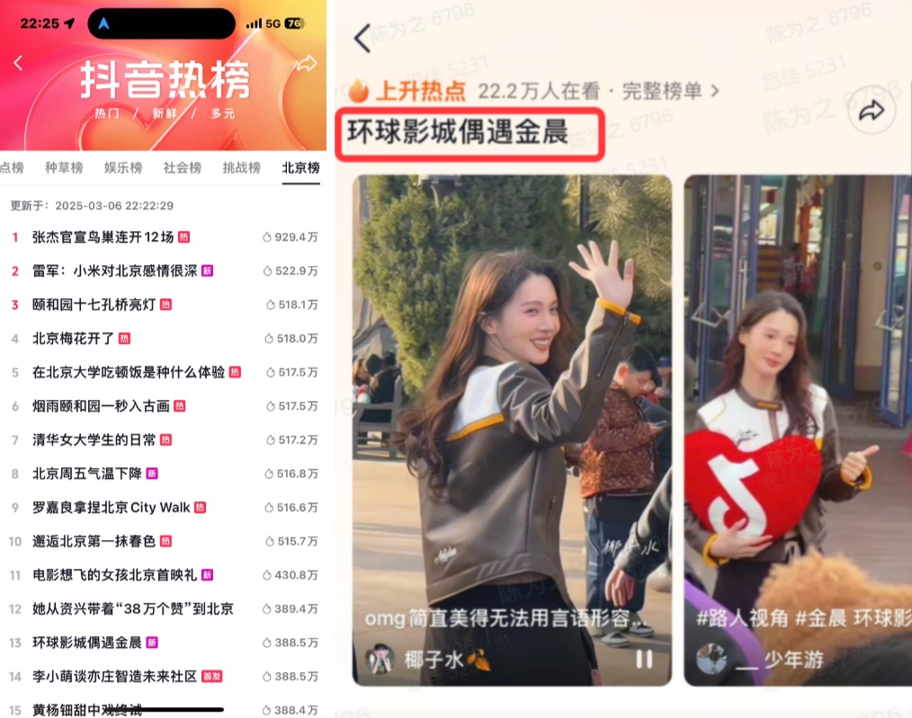 明星熱榜+高空種草,把“路過(guò)”變“留客” 金晨空降環(huán)球影城,直接把春日營(yíng)銷玩成“粉絲偶遇明星現(xiàn)場(chǎng)”!線下實(shí)景拍vlog、線上發(fā)爆款視頻雙線整活,金晨頂著“春日體驗(yàn)官”的頭銜帶粉絲沉浸式逛園。路人視角的線下偶遇vlog刷爆抖音,#環(huán)球影城偶遇金晨沖上熱榜,明星秒變樂(lè)園的“種草官”! 更隱秘的“彩蛋”藏在定制款登機(jī)牌里——北京環(huán)球度假區(qū)為本次抖音生活服務(wù)「城市奔赴計(jì)劃·春游季」-「春日機(jī)位大賽」的活動(dòng)特別定制了印有北京環(huán)球度假區(qū)地標(biāo)外景的限量登機(jī)牌,精準(zhǔn)鎖定北京-武漢黃金航線,來(lái)了場(chǎng)“高空種草”。