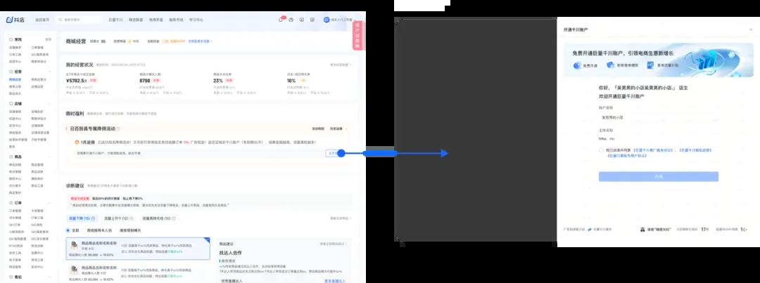 圖:未千川開戶商家報名后可一鍵跳轉(zhuǎn)開戶