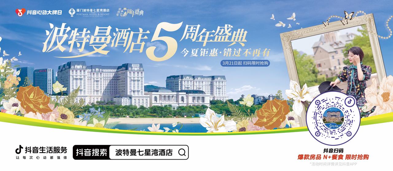 春光作序,萬物和鳴。 紫荊花映著羅馬柱隨風(fēng)而動(dòng),我們的鏡頭定格在廈門環(huán)東浪漫線的廈門波特曼七星灣酒店。10萬㎡的占地面積、7萬㎡歐式園林,756間房覆蓋三種法式風(fēng)情房型,為不少人解鎖了春日海島莊園的美好目的地。 3月21日-4月3日,廈門波特曼七星灣酒店聯(lián)動(dòng)「抖音心動(dòng)大牌日」傾情推出5周年盛典,打造多款心動(dòng)福利,專為不同出游旅居的人群量身定制;除此之外品牌匠心打造法式風(fēng)情直播間,探索出短視頻種草、線下打卡互動(dòng)等豐富玩法,主打「內(nèi)容場-營銷場-體驗(yàn)場」三位一體閉環(huán)。 線下O2O場景化營銷構(gòu)建用戶全生命周期觸點(diǎn),法式風(fēng)情直播間實(shí)現(xiàn)GMV轉(zhuǎn)化與品牌資產(chǎn)雙重沉淀;專屬會(huì)員權(quán)益體系形成私域流量護(hù)城河,真正踐行「所見即所得」的新消費(fèi)主義主張。