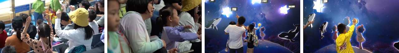 緊接著,這群小探險家們滿懷憧憬的來到了長隆飛船樂園二樓的「虎鯨科普劇場」,那里正上演著一場讓人目不暇接的虎鯨行為展示,孩子們仿佛置身于夢幻的水下世界,感受虎鯨的魅力,他們興奮地舉著小手,與保育員積極互動,這場表演不僅讓他們大飽眼福,更在他們心中悄悄打開了一扇學(xué)習(xí)海洋生物知識的大門,埋下了一顆對海洋無限向往的種子。而活動的高潮部分,無疑是在長隆飛船樂園二樓的星愿墻前,5名幸運的星玩家有幸為星星命名,他們滿懷儀式感地點亮了屬于自己的星星,并與其合影留念,將這份特別的美好瞬間封存起來。