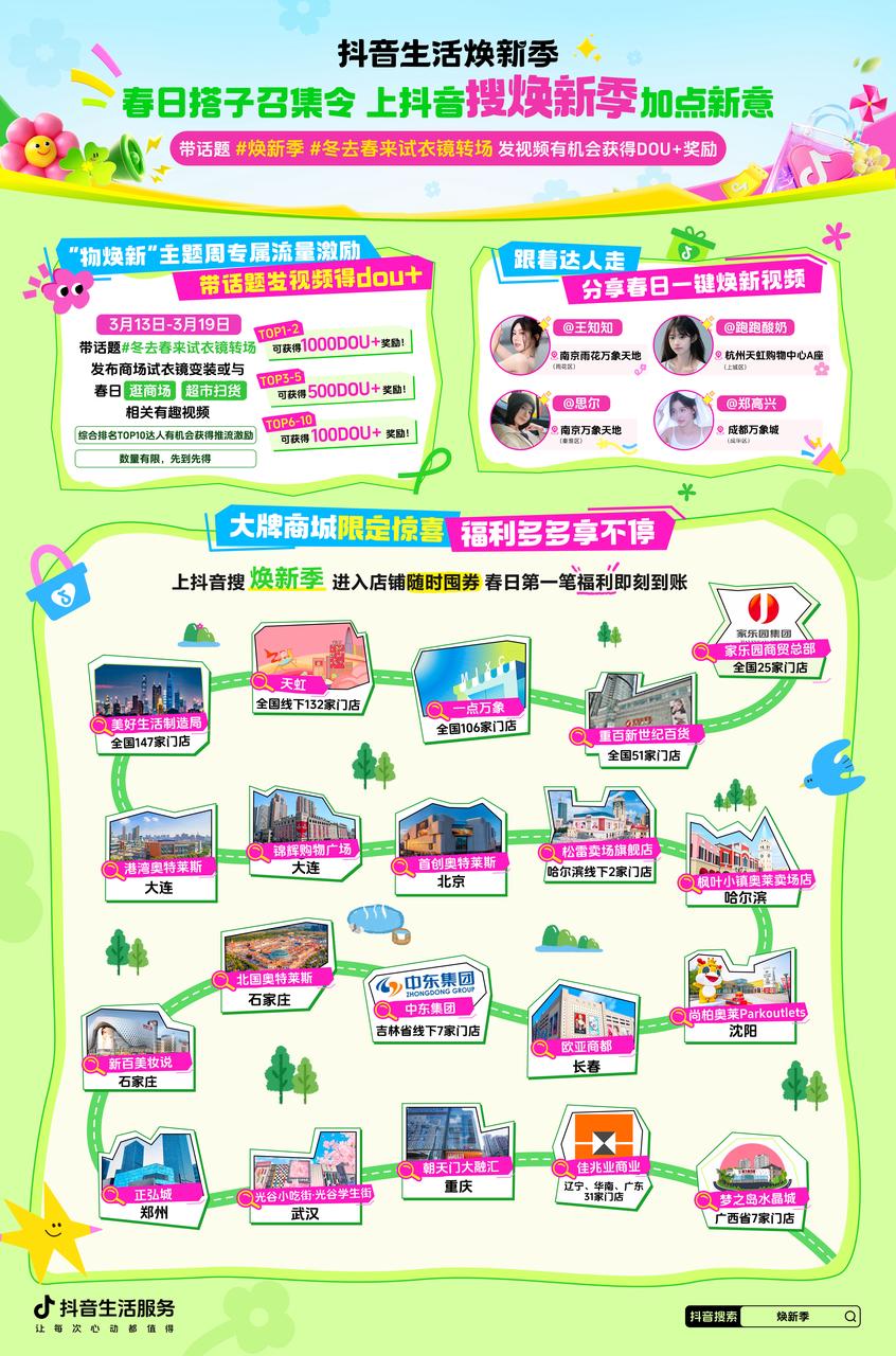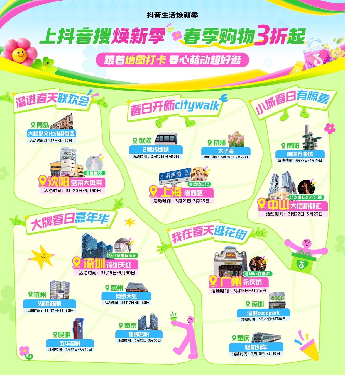 快來查收這張「春心萌動打卡地圖」,跟抖音生活一起全國巡回過春天,為你的春日煥新儀式感再加碼