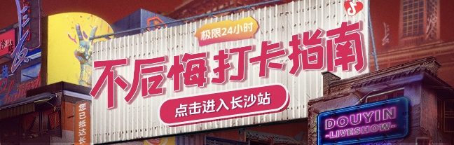 同時長沙站還發(fā)布了「極限24小時·不后悔打卡指南」,在欣賞演出之余,查看長沙當(dāng)?shù)囟兑粲脩粝矏鄣某院韧鏄泛萌ヌ?,打卡不后悔的新奇體驗(yàn)!抖音搜索“不后悔打卡指南”進(jìn)入話題,一鍵獲取長沙夜City、土著愛吃的熱辣餐廳、Citywalk打卡地等攻略指南,一起吃“湘”喝辣!