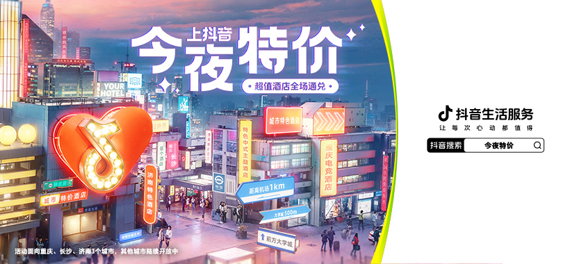 12月23日起,抖音生活服務(wù)“今夜特價(jià)”活動(dòng)正式啟動(dòng),并將從試點(diǎn)城市開始,逐步拓展至全國(guó)數(shù)十個(gè)城市。用戶可以在活動(dòng)期間下單購(gòu)買特價(jià)酒店通兌券,兌換同城上千家酒店,而且是一口價(jià)、不加價(jià)。