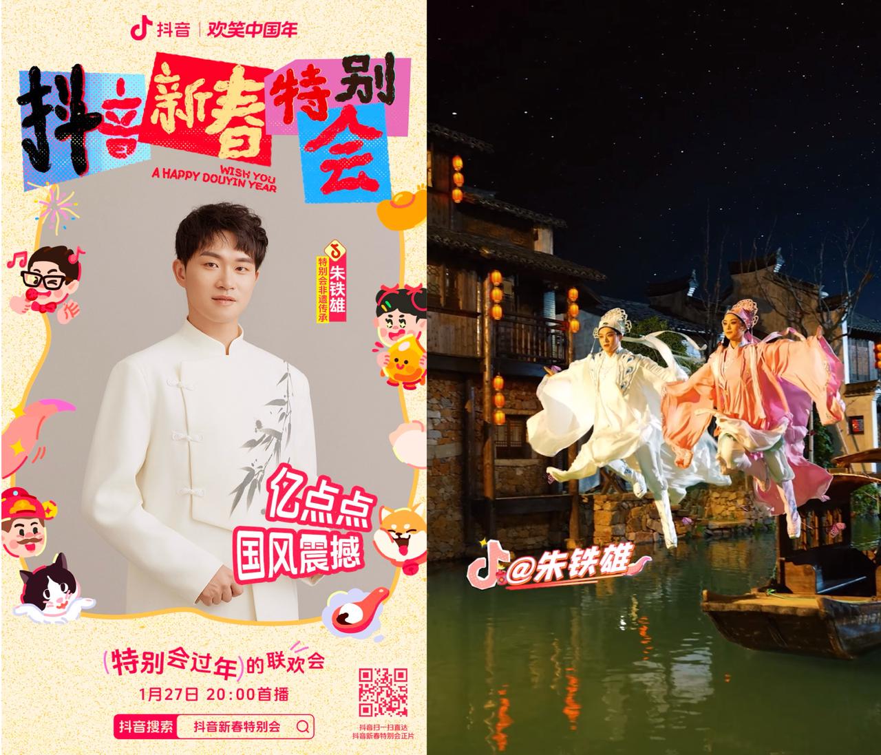 作為抖音用戶們的“精神年夜飯”,“抖音新春特別會”的節(jié)目除了抽象整活,也有不少傳統(tǒng)文化與潮流元素相結(jié)合,由創(chuàng)作者們精心打造的文化細糠。在“第一個非遺年”的背景下,很多傳統(tǒng)文化相關(guān)節(jié)目,不只是在大眾情緒上做到了極致響應(yīng),更是兼具人文底蘊和普世價值。