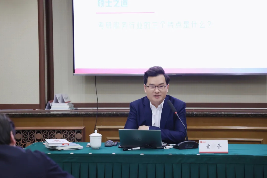 3月28日,未名湖畔,春色宜人。北京大學(xué)英杰交流中心二樓,碩士項(xiàng)目運(yùn)營人、《碩士寶典》《考研兵法》主編童偉,應(yīng)邀為北京大學(xué)AI人才升學(xué)戰(zhàn)略規(guī)劃研修班學(xué)員授課。該班由北京大學(xué)立項(xiàng)舉辦,參與對象為全國教育升學(xué)服務(wù)機(jī)構(gòu)的負(fù)責(zé)人,本次活動(dòng)課程由劉越峰老師主持。