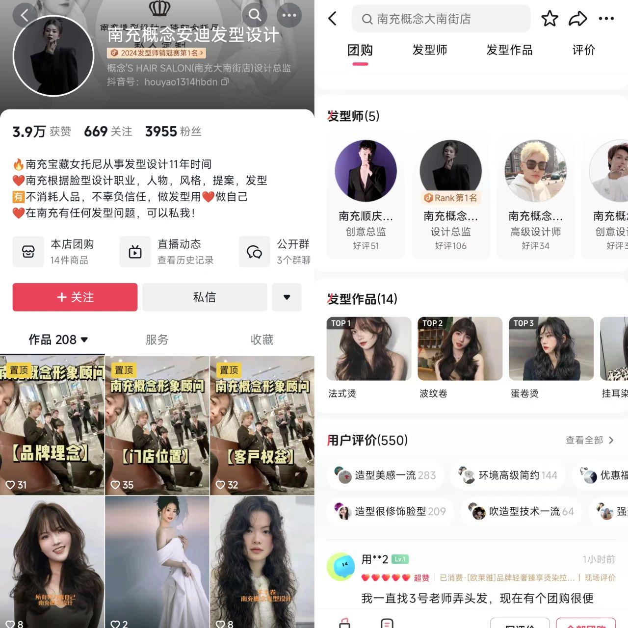 之所以能有如此成效,離不開直播、短視頻的實(shí)景展示,讓顧客在到店之前就能預(yù)見效果。這極大地提升了顧客的成單意愿和好感度。對(duì)于這一點(diǎn),南充概念理發(fā)店的安迪也深有感觸。