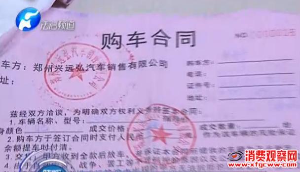 記者和董女士一起來到購(gòu)車店了解情況。來到店門口時(shí)董女士發(fā)現(xiàn),上次來的這家店名字叫做德云車庫(kù),而現(xiàn)在改名叫"河南立鴻汽車",但購(gòu)車合同上蓋章是鄭州興遠(yuǎn)弘汽車銷售有限公司。關(guān)于店方更換門頭的操作,董女士更覺得受到了欺詐。