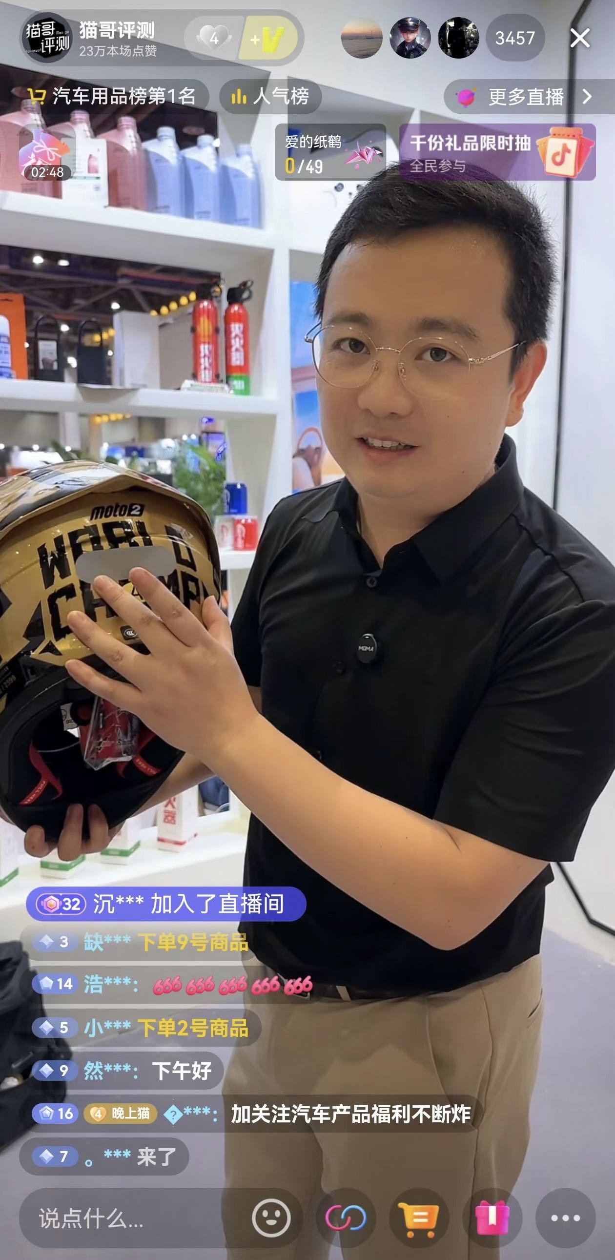 除了垂直領(lǐng)域的KOL外,來自其他領(lǐng)域的中小達(dá)人也積極參與到抖音商城中來。這些達(dá)人不斷嘗試新的內(nèi)容創(chuàng)作方向,并帶來了大量高質(zhì)量的內(nèi)容輸出,從而吸引更多元化的用戶群體關(guān)注。例如數(shù)碼類達(dá)人貓哥評測線下展會現(xiàn)場直播,首播便登上汽車用品榜第一名。