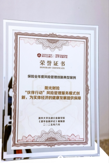 6月6日,由《清華金融評論》編輯部主辦的“第二屆‘保險家論道’研討會暨中國保險競爭力排行榜發(fā)布會”在京舉辦,會上揭曉了2025中國保險競爭力評選結(jié)果,陽光財險申報的案例——《“伙伴行動”風(fēng)險管理服務(wù)模式創(chuàng)新 為實體經(jīng)濟的健康發(fā)展提供保障》獲評保險業(yè)年度風(fēng)險管理創(chuàng)新典型案例。