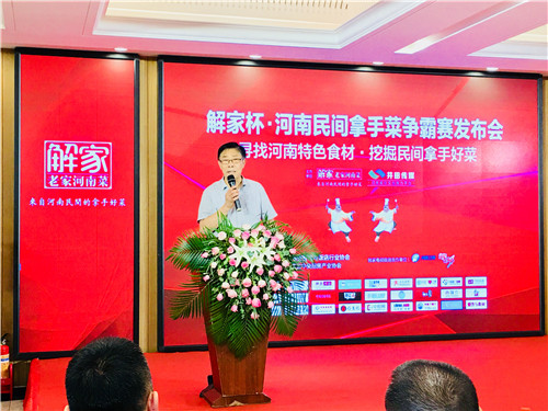 7月24日,尋找河南地道食材挖掘民間拿手好菜,“解家杯·河南民間拿手菜爭霸賽”發(fā)布會在解家老家河南菜商鼎路店舉辦。河南省餐飲與飯店行業(yè)協(xié)會會長張海林、首席專家郭京普、秘書長宋春亭等協(xié)會領(lǐng)導(dǎo)、品牌餐飲代表、優(yōu)秀供應(yīng)商代表等100余人出席發(fā)布會。