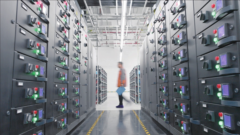 圖為工作人員在西部云基地中國(guó)移動(dòng)寧夏數(shù)據(jù)中心對(duì)設(shè)備進(jìn)行檢查維護(hù)。