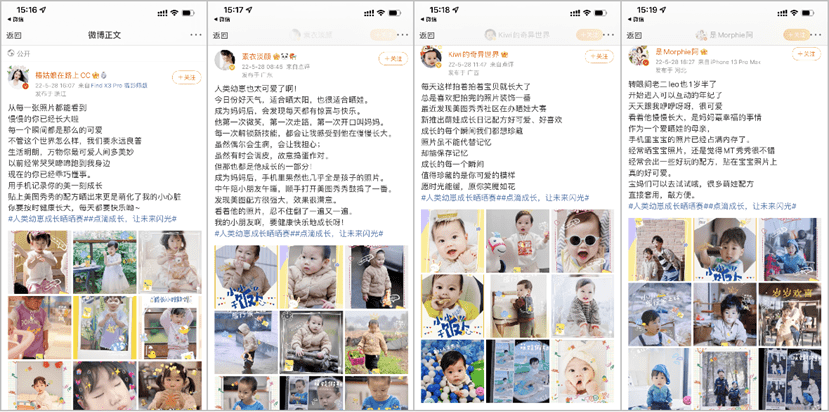 曬娃,是大多數(shù)寶爸寶媽的每周必備功課。記錄寶寶們成長路上的無數(shù)第一次,標記萌娃日常的搞笑瞬間,寶貝喜怒哀樂的每一幀在爸爸媽媽眼里都是必須被記錄下來的關(guān)鍵時刻,正因此,圖片攝影類APP也成為了中國媽媽們的裝機必備。 為鏈接品牌與母嬰人群達成深度溝通互動,助推品牌種草拓圈。美圖2022特推出母嬰IP「人類幼崽成長曬曬賽」,旨在打造一個官方的曬娃陣地,號召寶媽帶著靈感與品牌一起共創(chuàng)花式曬娃的N種可能,記錄和關(guān)愛寶寶成長。 作為同樣專注守護和關(guān)愛寶寶成長的品牌,飛鶴持續(xù)60年專注母乳研究早已是行業(yè)標桿級存在,而飛鶴想達成的不僅是為中國寶寶提供新鮮營養(yǎng),更是積極參與到寶寶成長的各個環(huán)節(jié),多維度守護中國寶寶健康成長。于是,自18年起,飛鶴聯(lián)合中國奶業(yè)協(xié)會、中國乳制品工業(yè)協(xié)會等二十多家單位,將5月28日定義為“中國寶寶日”。 而今年528寶寶日,飛鶴帶著全新升級主題“點滴成長·讓未來閃光”,從“陪伴”到“成長”再到“未來”,深度洞察中國親子關(guān)系,聯(lián)合寶寶成長記錄平臺美圖一同攜手發(fā)起「人類幼崽成長曬曬賽」,聚焦“成長&未來”兩大關(guān)鍵詞,通過美圖特色玩法深入對話媽媽圈層,用多場景配方打造寶寶“成長日記”,在定格寶寶閃光瞬間的同時傳遞飛鶴品牌溫度,深化飛鶴品牌“每個成長的點滴時刻,都值得被紀念和珍藏”的核心,不斷強化飛鶴與消費者之間的信任紐帶與情感聯(lián)結(jié),多維度助力寶寶成長,讓未來閃光。 最終,項目通過聚焦萌娃成長的不同曬照需求,深度激發(fā)參與熱情,打造528“中國寶寶日”節(jié)日熱絡(luò)氛圍,并配合平臺級運營資源助攻,整體取得了8億+項目曝光,收獲不俗效果。 八款配方+專區(qū)聚合 一站式覆蓋幼崽成長全路徑 18年,飛鶴發(fā)現(xiàn)了中國家庭在“高質(zhì)量陪伴”上的缺失,由此發(fā)起了“中國寶寶日”與萬千中國家庭一起探討積極正確的親子關(guān)系。而今年,528中國寶寶日聚焦“成長&未來”,攜手美圖秀秀,通過對中國父母曬娃行為的深度洞察,抓住寶媽寶爸在幼崽成長的各個階段都想記錄和分享的原生需求,讓寶媽寶爸深度參與孩子成長,一鍵定格寶寶成長精彩瞬間。 活動聚焦萌娃成長關(guān)鍵瞬間,推出13款覆蓋不同場景的配方玩法,其中包括飛鶴品牌專屬配方8款,從萌娃日常、第一次干飯、第一次旅游、第一次GET新技能、第一次學(xué)說話、趣味表情包等,全方位聚焦寶貝生活場景,向外傳達寶貝成長的每個關(guān)鍵節(jié)點都有飛鶴守護的核心理念,深度傳遞品牌溫度。
