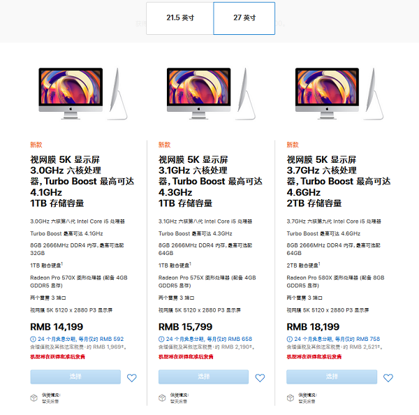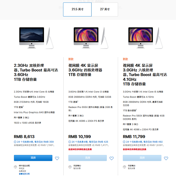 蘋果推出新款iMac,21.5英寸版售價(jià)10199元起