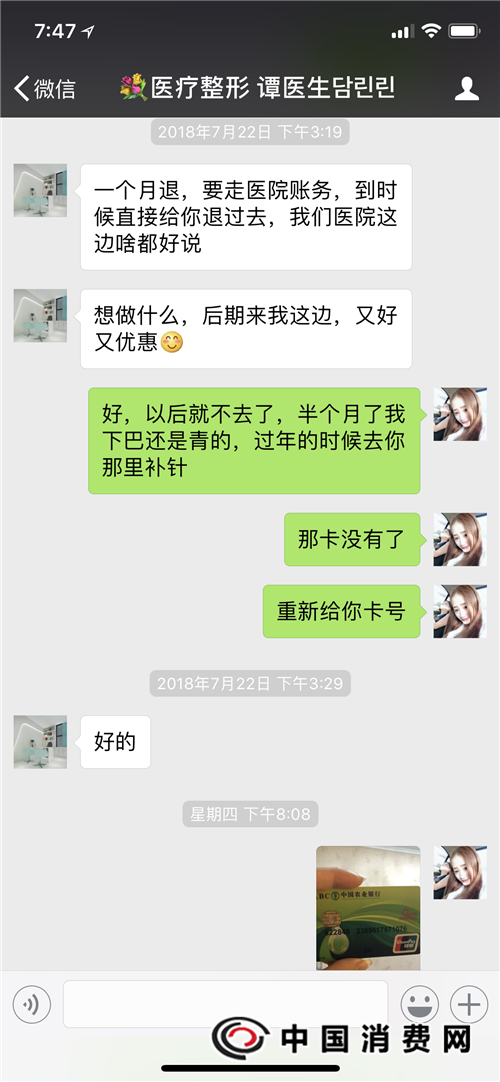 編者按:河南省商丘市付女士向中國(guó)消費(fèi)者報(bào)·河南消費(fèi)網(wǎng)投訴稱(chēng),在鄭州市愛(ài)美麗整形美容醫(yī)院繳納2萬(wàn)元,進(jìn)行取假體和鼻綜合。取假體后時(shí)隔半年做鼻綜合。但取完假體后,付女士發(fā)現(xiàn)鼻子還發(fā)紅,就沒(méi)信心,不愿再做其他項(xiàng)目。但對(duì)方卻不退錢(qián),雙方協(xié)商,付女士共消費(fèi)1.6萬(wàn)元,剩余4000元對(duì)方卻始終不退。 投訴者情況 姓 名:付女士 電 話:152****1551 地 址:河南省商丘市 投訴類(lèi)別:美容美發(fā) 投訴對(duì)象情況 投訴對(duì)象名稱(chēng):鄭州愛(ài)美麗整形醫(yī)院 地 址:鄭州市鄭東新區(qū)商務(wù)外壞路與商務(wù)西四街交叉口東北角 聯(lián)系方式:0371-66676666 投訴內(nèi)容(事實(shí)時(shí)間、地點(diǎn)、人物及事情起因、發(fā)展、結(jié)果) 2018年1月11號(hào),本人在愛(ài)美麗醫(yī)院進(jìn)行了取假體包括術(shù)后修復(fù)的項(xiàng)目,一共交了20000元,當(dāng)時(shí)只取了假體,準(zhǔn)備養(yǎng)半年后再做鼻綜合,取鼻假體之前本人鼻子下滑發(fā)紅,并不是該醫(yī)院所導(dǎo)致,但是他們醫(yī)院的中間人信誓旦旦的說(shuō)在該醫(yī)院一定會(huì)給我看好,我才到此醫(yī)院進(jìn)行治療。2018年7月6號(hào)本人到達(dá)該醫(yī)院進(jìn)行當(dāng)初半年后的鼻修復(fù)項(xiàng)目,期間質(zhì)問(wèn)工作人員取出假體半年了當(dāng)初承諾說(shuō)一定會(huì)把我鼻子取出來(lái)后不在發(fā)紅為何至今還是紅,工作人員當(dāng)場(chǎng)否認(rèn)曾經(jīng)說(shuō)過(guò)這話,并且無(wú)法保證這次修復(fù)手術(shù)鼻子會(huì)不在發(fā)紅,我沒(méi)了信心要求退款,起初她們醫(yī)院胡亂扣錢(qián),說(shuō)取假體需要扣掉一萬(wàn)多元,我覺(jué)得不劃算,后來(lái)經(jīng)過(guò)協(xié)商決定除去取假體的 6000費(fèi)用外,剩下的14000換成別的項(xiàng)目。當(dāng)天在此醫(yī)院消費(fèi)了10000,兩支玻尿酸一支瘦臉,卡里還剩4000,距離打完項(xiàng)目到現(xiàn)在已半個(gè)多月,總覺(jué)得對(duì)下巴不滿意,淤青也是半個(gè)多月最后才下去,我就要求該醫(yī)院工作人員把剩下的錢(qián)歸還,本來(lái)說(shuō)一個(gè)月退,過(guò)幾天發(fā)消息又說(shuō)不退了,退不了。我想說(shuō),醫(yī)院的價(jià)格不都是固定的,難道還可以變來(lái)變?nèi)??沒(méi)消費(fèi)完的錢(qián)本就應(yīng)該退還給我,卻態(tài)度很惡劣,一直不退。于是我只能通過(guò)此渠道來(lái)維權(quán)。 投訴請(qǐng)求:將剩余的錢(qián)退還給我。 現(xiàn)有證據(jù):聊天記錄