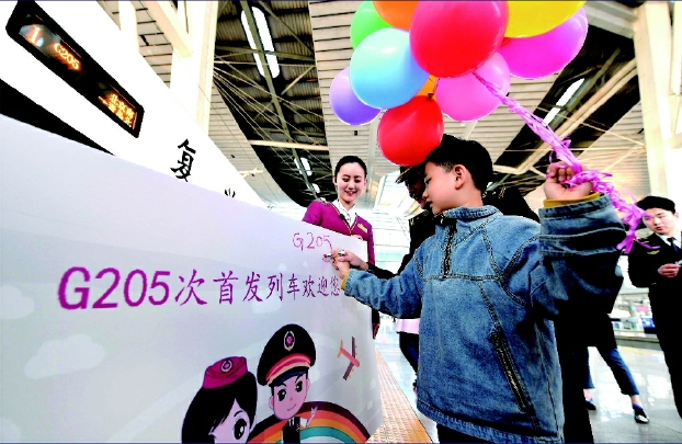 近日,全國鐵路實施新的列車運行圖。此次鐵路調(diào)圖進一步優(yōu)化了高鐵列車開行方案,改善旅客旅行體驗,讓鐵路安全舒適高效便捷的運輸惠及更多老百姓。圖為由北京南開往青島北的G205次列車,全程只需要2小時58分,北京與青島間正式迎來3小時交通生活圈。