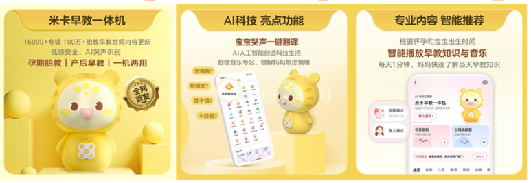 近年來,寶寶樹建立從備孕、懷孕到育兒全周期的產(chǎn)品及服務(wù)體系,服務(wù)對象從“媽媽”拓展成“母嬰家庭”,服務(wù)內(nèi)容從孕育知識延伸至啟蒙早教、中/大童服務(wù)等新領(lǐng)域。2022年,寶寶樹推出C2M自研系列產(chǎn)品全新智能育兒硬件——“米卡早教一體機(jī)”,可輸出覆蓋媽媽孕期到6歲大童各階段的知識內(nèi)容,并有望在將來深度打通線上線下場景,成為母嬰智能科教第一平臺。從推出智能育兒硬件,到此次上線《幼兒園入園準(zhǔn)備保姆級攻略》,寶寶樹正深度參與嬰幼童全生命周期服務(wù),創(chuàng)新滿足廣大母嬰用戶的新需求,與年輕家庭共赴幸福成長旅程。