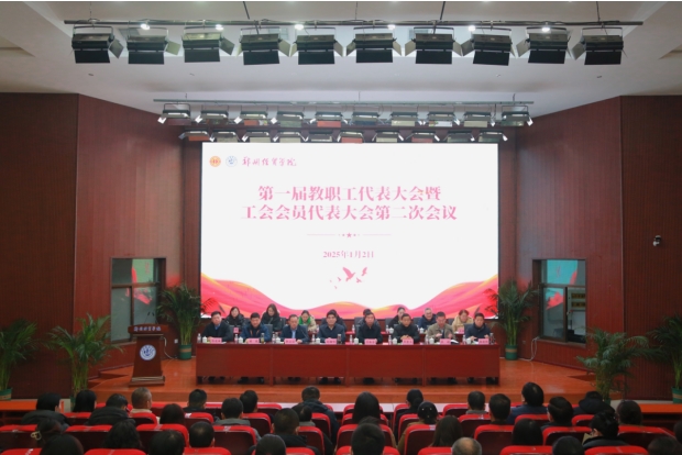 2025年1月2日,鄭州經(jīng)貿(mào)學(xué)院第一屆教職工代表大會(huì)暨工會(huì)會(huì)員代表大會(huì)第二次會(huì)議在學(xué)術(shù)報(bào)告廳勝利召開(kāi)。全體校領(lǐng)導(dǎo)、75名正式代表、48名列席代表參加大會(huì)。