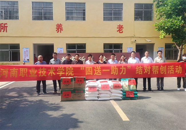為發(fā)揮文明單位示范引領(lǐng)作用,促進(jìn)城鄉(xiāng)精神文明融合發(fā)展,助力全面推進(jìn)鄉(xiāng)村振興,以實(shí)際行動迎接黨的二十大勝利召開,6月30日,河南職業(yè)技術(shù)學(xué)院黨委副書記、紀(jì)委書記田華、副校長李玉峰帶領(lǐng)宣傳部、科技開發(fā)處、繼續(xù)教育與培訓(xùn)中心等部門同志赴舞陽縣辛安鎮(zhèn),與舞陽縣辛安鎮(zhèn)政府簽署“四送一助力”結(jié)對幫創(chuàng)合作協(xié)議,開展物資捐贈,支部共建、慰問敬老院和送文化、科技等結(jié)對幫創(chuàng)活動。舞陽縣縣委常委、宣傳部長、副縣長王仕梁及有關(guān)部門和鄉(xiāng)鎮(zhèn)領(lǐng)導(dǎo)陪同參加。